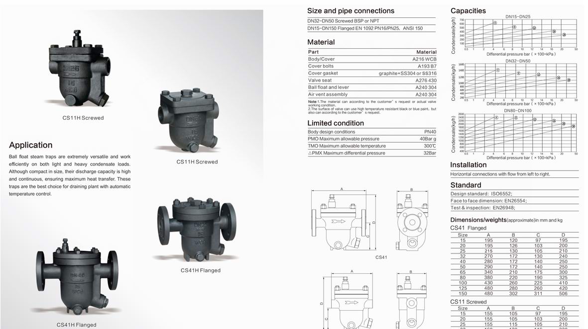 5、敞口形的浮子抗水擊,吊桶上設有溢出排氣孔,可有效防止蒸汽汽鎖,空氣氣堵現(xiàn)象。(非凝結性的高溫空氣也可排除)