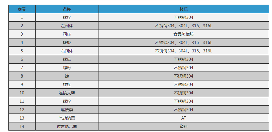 主要零部件材質(zhì)