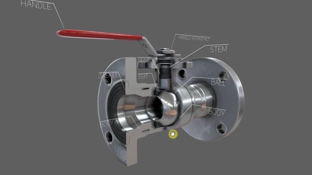 球閥的模型如圖所示,它的啟閉件是位于閥門中心處的球體,由閥桿帶動旋轉實現開閉操作。球閥和蝶閥、旋塞閥一樣都是四分之一轉閥,可以快速啟閉,只需要轉動90°就可以從全開到全關。